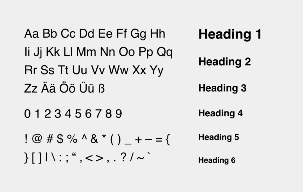 Wir nutzen als Grundlage eine serifenlose Systemschrift und haben zehn fluide Schriftgrößen sowie individuell Styles für Listen und thematische Einordnungen vorbereitet. Somit sind wir optimal vorbereitet, um das Projekt schnell inhaltlich aufzubauen und später flexibel typografisch anzupassen.