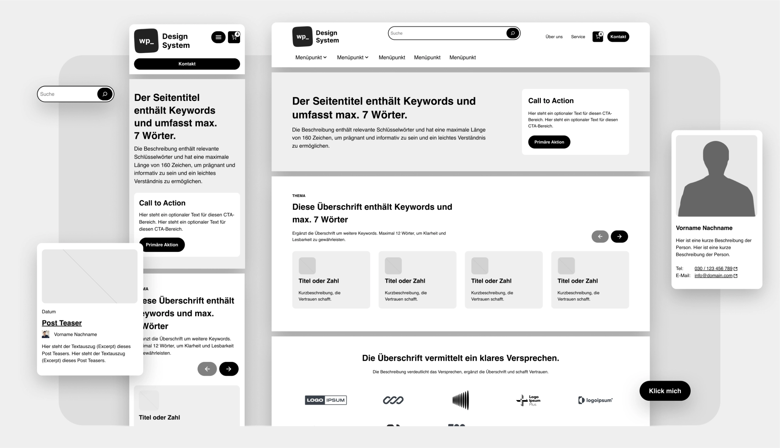 Wir haben die wichtigsten Vorlagen der WordPress Template-Hierarchie im Design System integriert, um neue Projekte schnell aufbauen und Individualisieren zu können. Für WooCommerce sind die Standard-Templates ebenfalls vorbereitet.